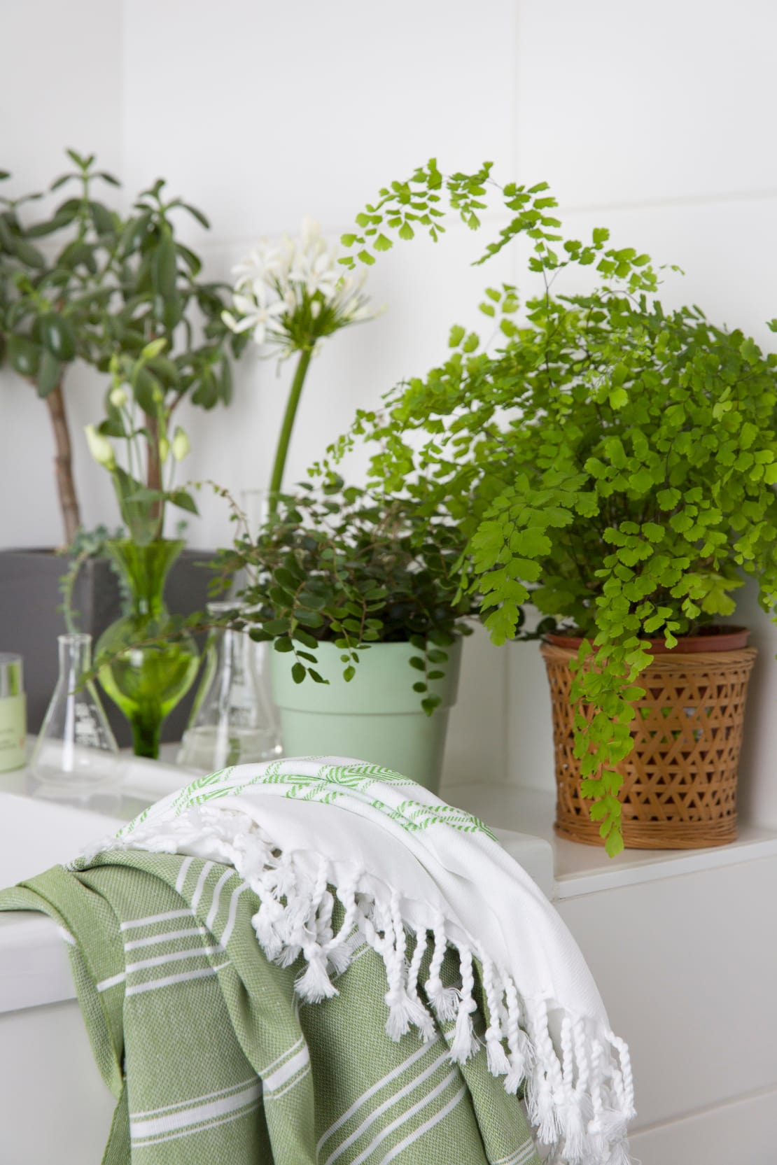 O verde torna até o menor espaço mais fresco e fácil. Se você não tiver espaço no chão, tente pendurar panelas com flores.