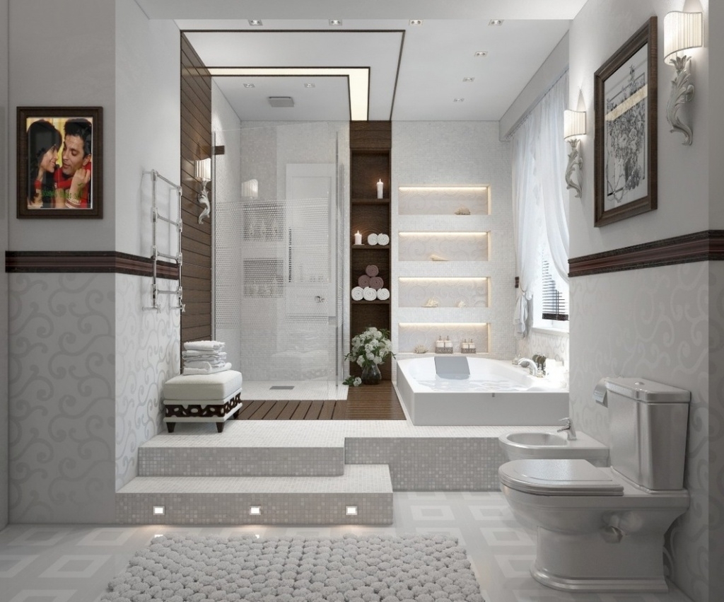 Clássico O classicismo pode ser dividido em várias subespécies: veneziano, inglês e francês. Todos esses estilos são perfeitos para qualquer banheiro, eles parecem esteticamente agradáveis e permanecerão na moda por muitos séculos.
