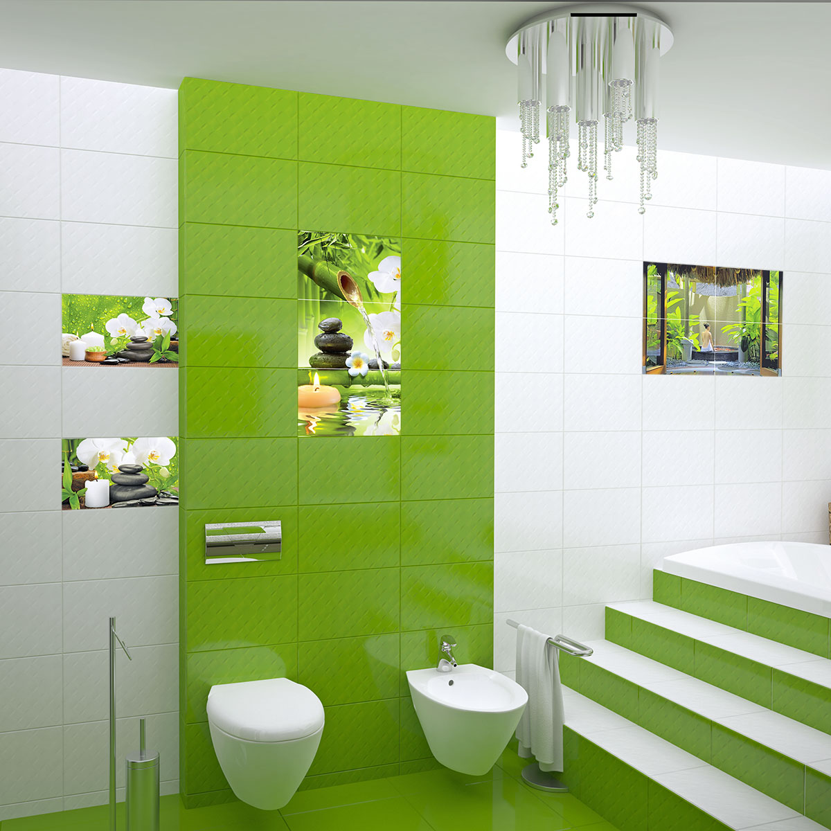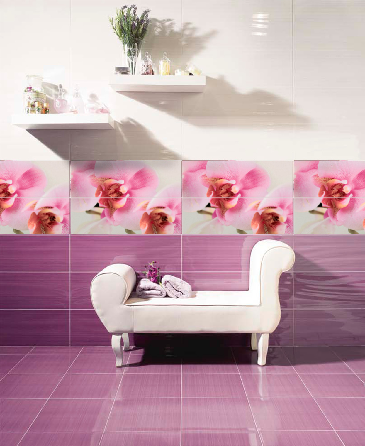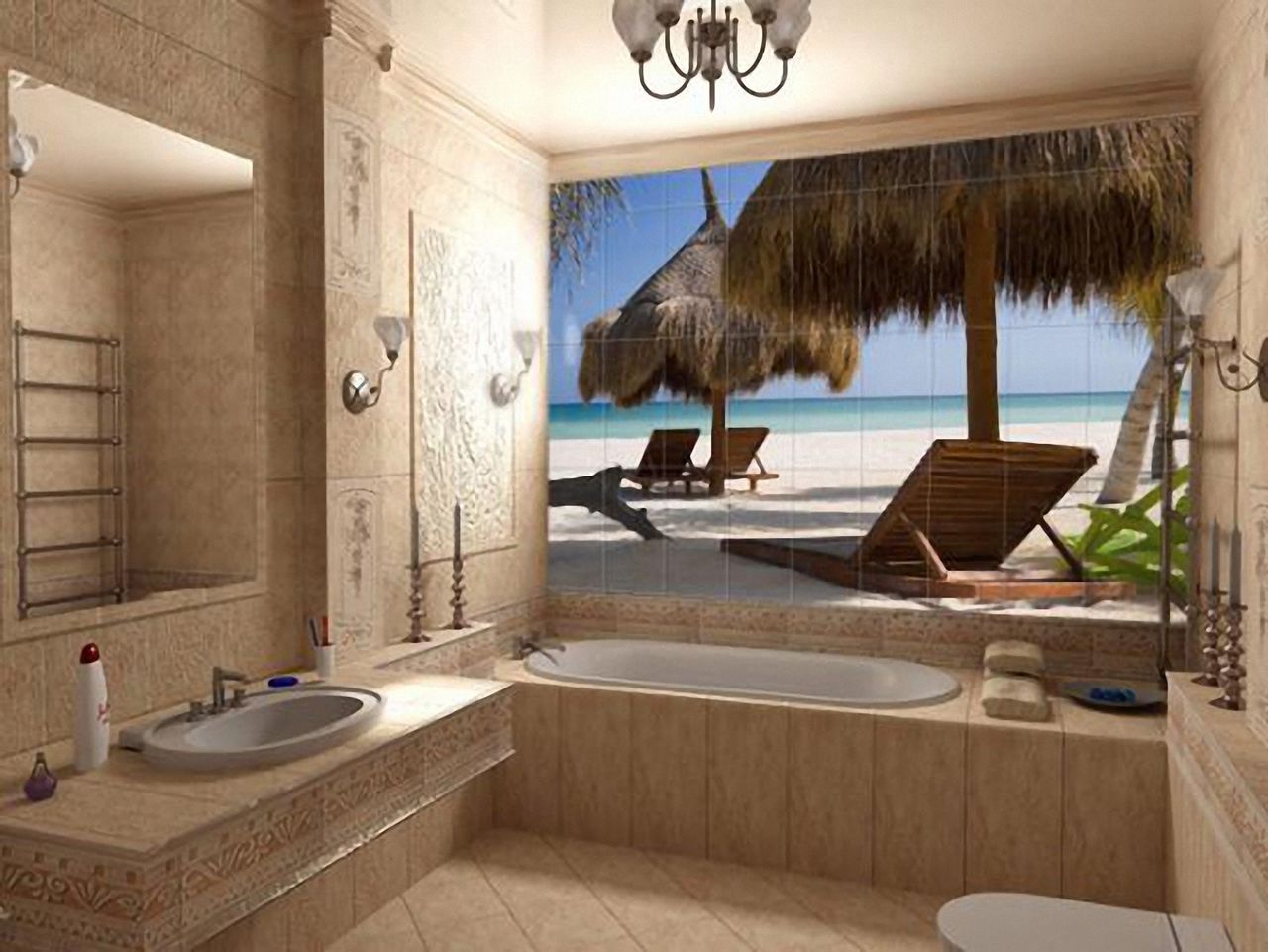 Um painel para uma pequena sala não funcionará, mas em um banheiro de tamanho médio, e ainda mais em um grande, tal desenho parecerá interessante e muito bonito. É necessário considerar cuidadosamente a escolha do estilo do painel. Este design não é muito caro, você pode escolher um painel em qualquer categoria de preço. Além disso, a técnica de revestimento também não é complicada, e se você tiver pelo menos alguma ideia desse tipo de trabalho, você pode lidar com isso sozinho.