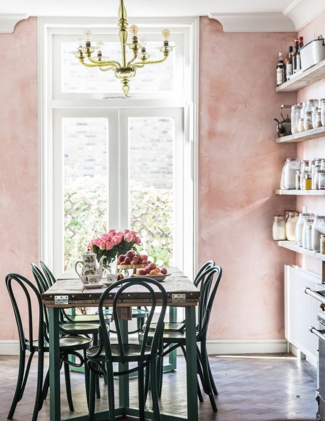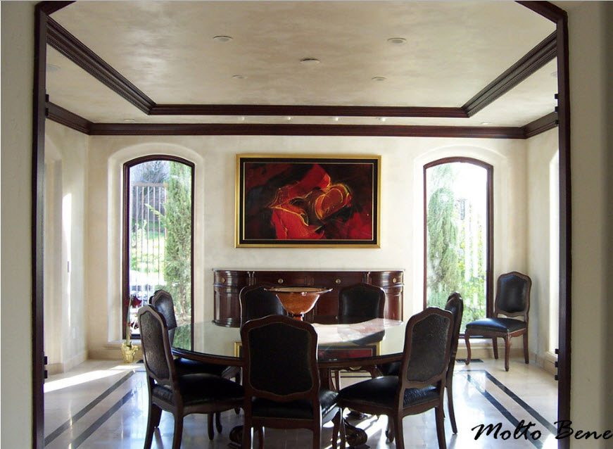 Emplastro veneziano lembra a atmosfera do velho mundo, adequado para um romântico quartos ou uma sala de jantar exclusiva. Isso requer mais trabalho do que a pintura tradicional, portanto, o custo é mais, portanto, a maioria dos proprietários usa seletivamente, e não em toda a casa.