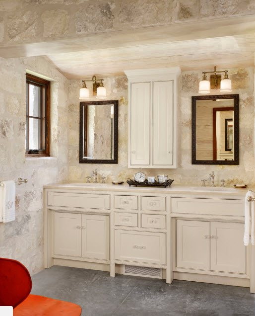 O que poderia ser mais expressivo para uma sala de estar do que uma parede de pedra? É incrível como um material tão frio e pesado pode se transformar em um recurso quente e atraente em ambientes fechados. Não importa qual a textura e cores que você escolher, você pode combiná-lo com muitos estilos de design. Este acabamento adiciona uma aparência sólida e durável a uma elegante e moderna sala de estar. É também a combinação perfeita para um espaço espaçoso com uma área de jantar. Sotaque Venetian parede de pedra adiciona dinâmica para a sala, bem como uma maneira brilhante para esconder superfícies de gesso ou gesso danificado.