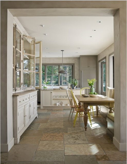 Você pode considerar o cinza como adequado para escritorio, mas pode ser um bom complemento para a cozinha com paredes de gesso de venezianos. Tons escuros de cinza devem ser usados com moderação, de modo que o espaço da cozinha que parece escuro ou perturbador não funcione. Você pode escolher bancadas de granito de carvão ou cinza carvão. balcões de bar.