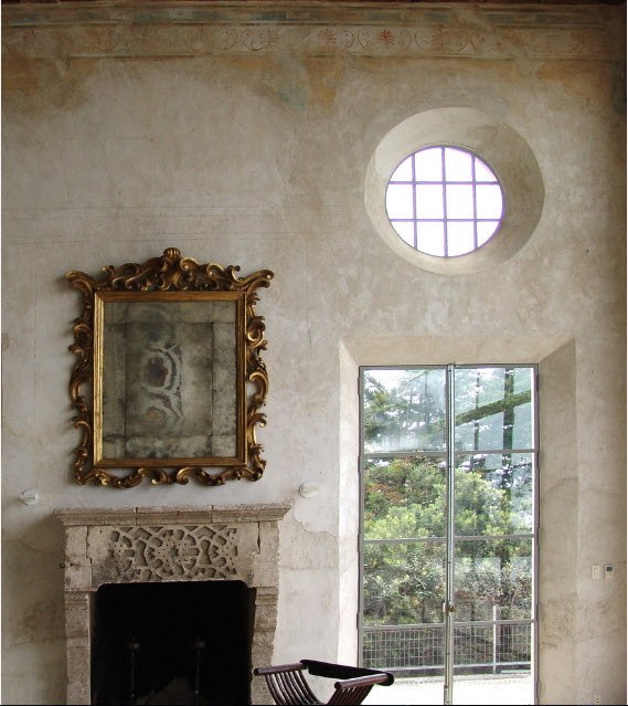 O famoso gesso marmoreado é chamado de "Marmorino". Literalmente significa “mármore pequeno” em italiano: minúsculas partículas de mármore são misturadas com cal para criar um gesso liso e polido.