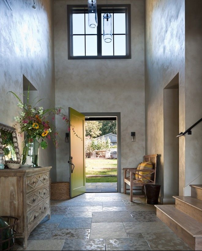 Escolha uma cor de acento cinza-marrom ou bege se o seu gesso se parecer com uma pedra marrom. Tons terra em gesso veneziano também parecem atraentes quando são combinados com aparelhos de aço inoxidável, madeira natural.