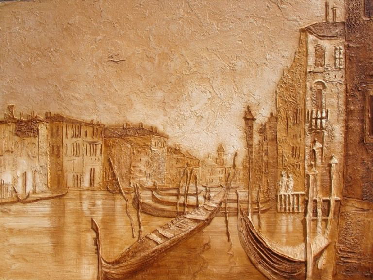 Hoje, até mesmo um novato na indústria de bricolage pode criar resultados impressionantes. O revestimento imita a aparência de gesso ou mármore polido, característico da arquitetura européia do velho mundo. A versão moderna do gesso veneziano tem uma aparência multidimensional com uma superfície texturizada e ligeiramente elevada, que é o resultado de duas ou mais camadas.