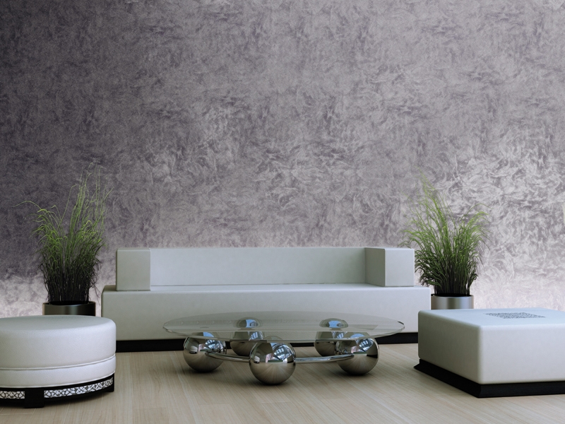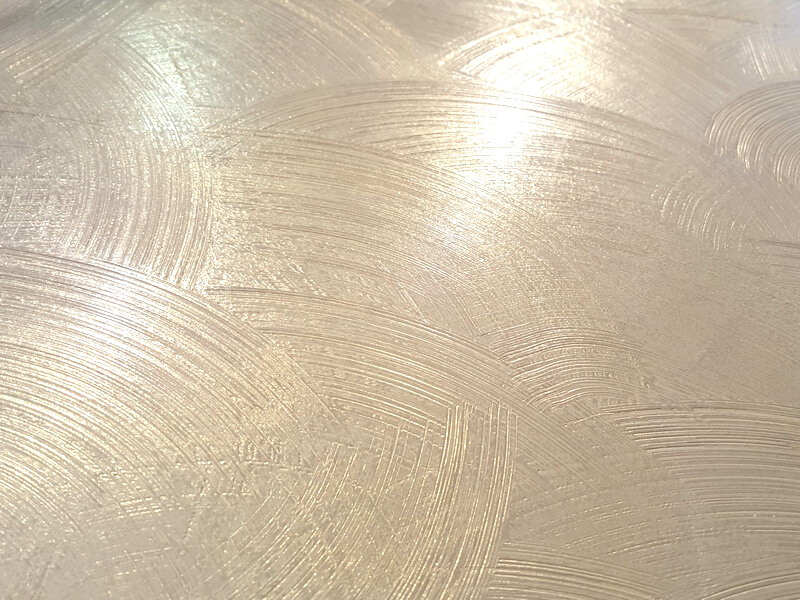 Este acabamento tem um brilho especial e um efeito cromático atraente, adequado para a decoração de interiores de prestígio.oh O efeito metálico é obtido pela adição de uma grande quantidade de pó fino de metal multi-colorido, em vez do habitual pó de mármore. Está disponível em prata, ouro, cor bronze.