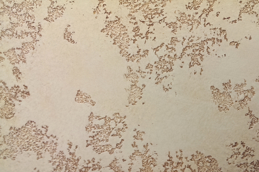 Gesso com o efeito de travertino tem um efeito de pedra fina com uma textura suave de vários graus, dependendo do tamanho do grão e método de aplicação.