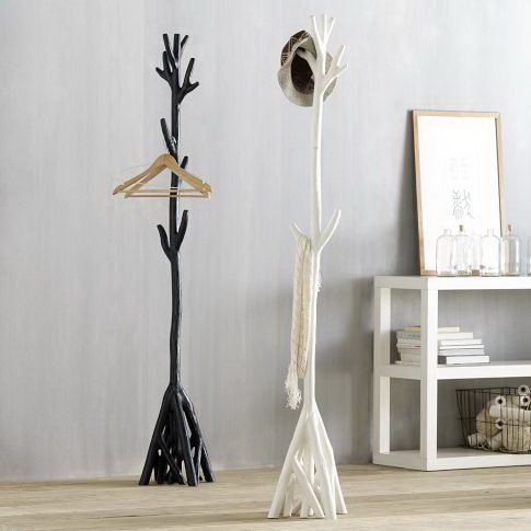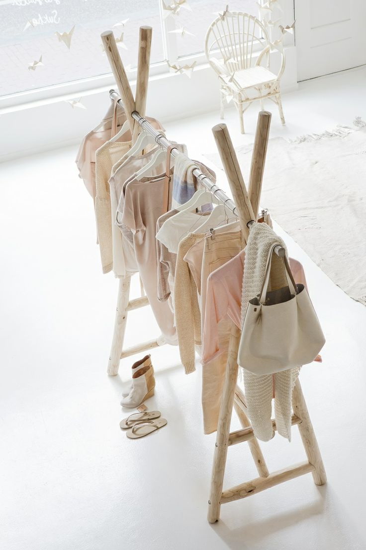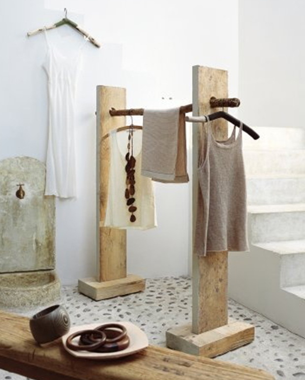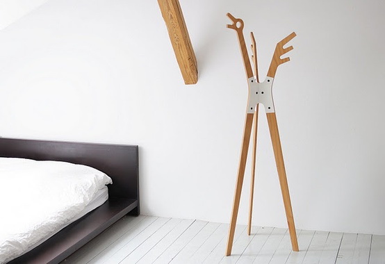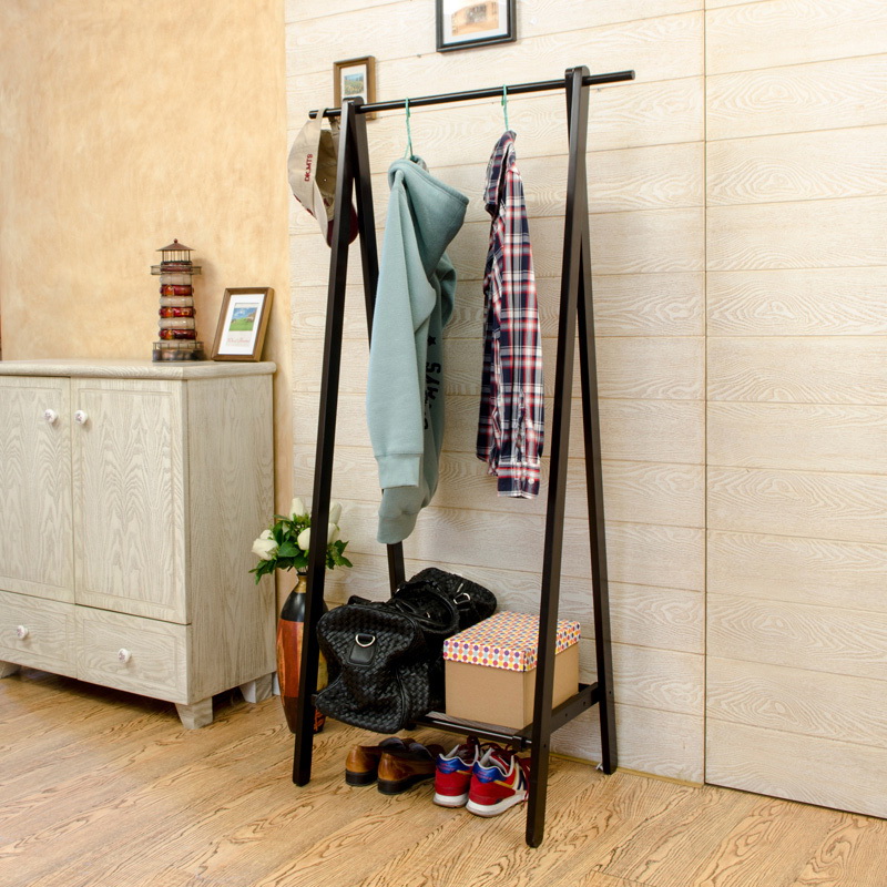 Estes são raramente de metal ou plástico. O design desta unidade antiquada, mas muito prática, é feito exclusivamente por pessoas que sabem muito sobre a organização do espaço. Os produtos, por via de regra, feitos de madeira, os ganchos, a base e a barra transversal neste caso devem ser metálicos ou também de madeira.