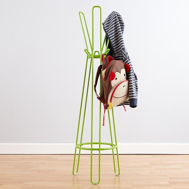 - uma base com vários ganchos e uma barra transversal ligada (às vezes é adicionado um espelho);
