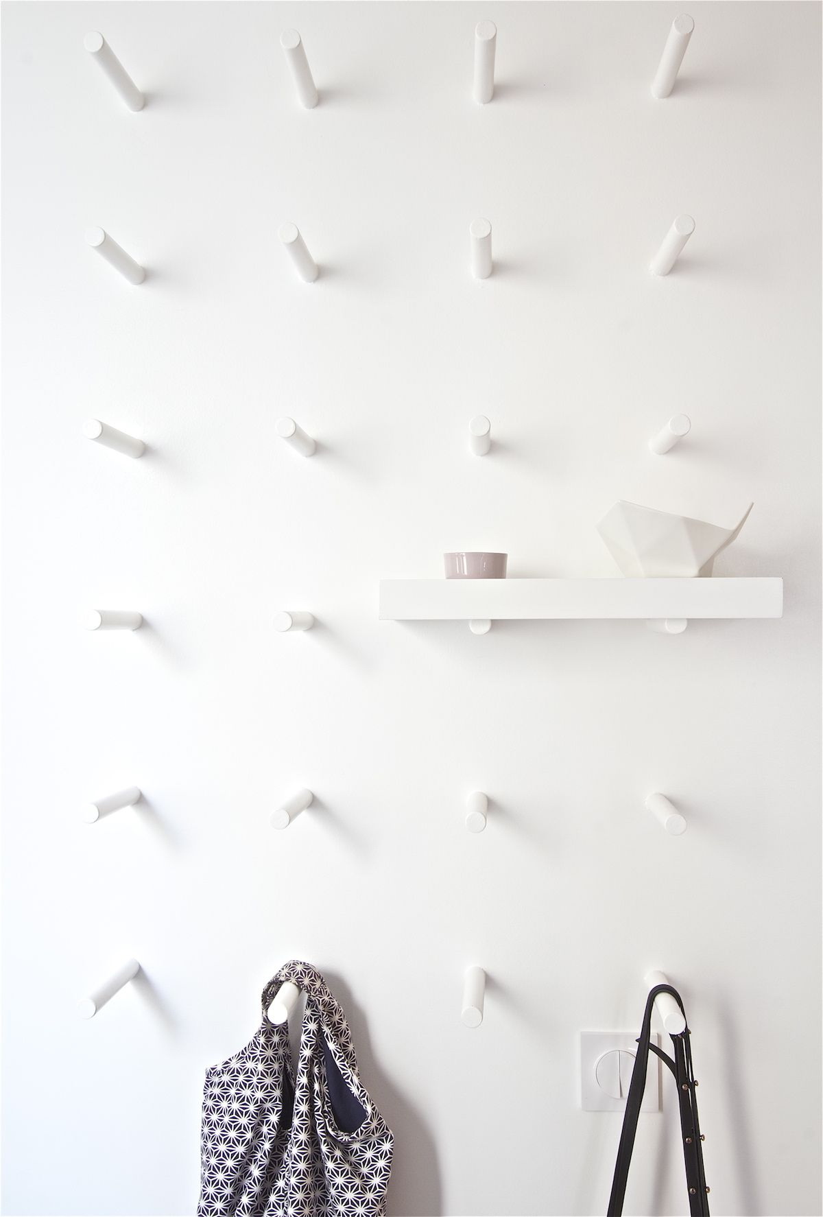 Conhecido por nós pelos velhos tempos soviéticos, o design do gancho agora é significativamente melhorado. Estamos todos acostumados ao fato de que os ganchos geralmente estão localizados na barra transversal, que está diretamente conectada à parede. Isso torna a estrutura inteiramente dependente da resistência da parede e da resistência do material do qual é feita. Normalmente os ganchos deste projeto saem para banheiro ou salas de armazenamento: essas salas não exigem muito esforço físico dos móveis.