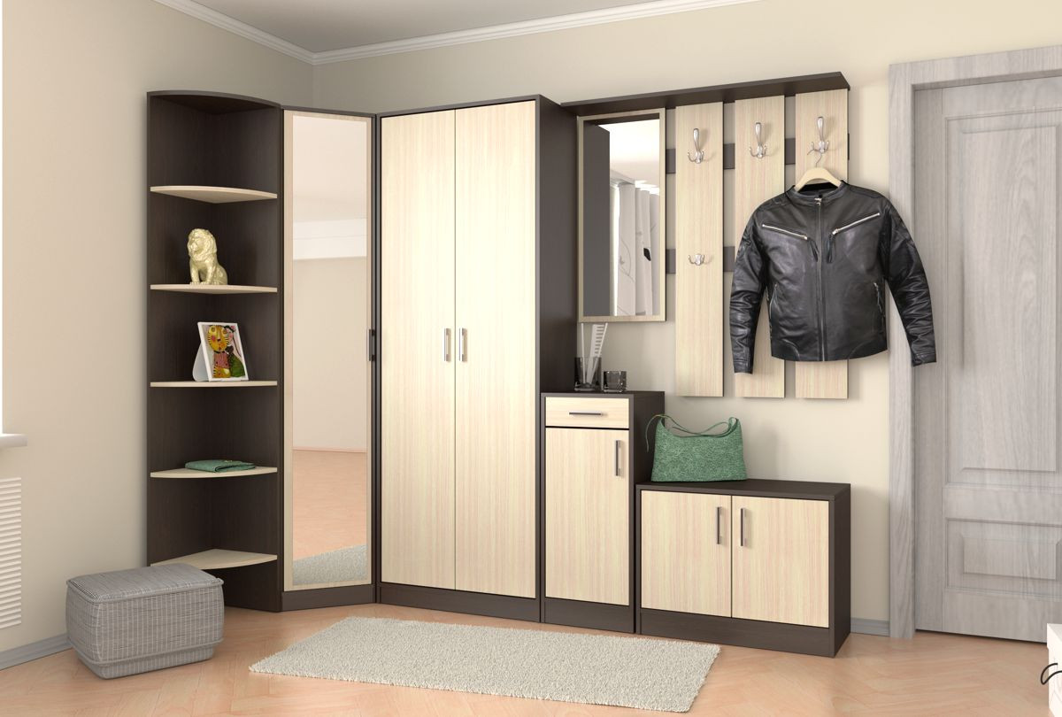 Esta é uma das soluções mais conservadoras e mais aceitáveis para pequenos apartamentos. A loja de cabide, por via de regra, compõe-se dos seguintes módulos: