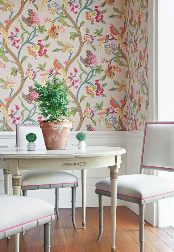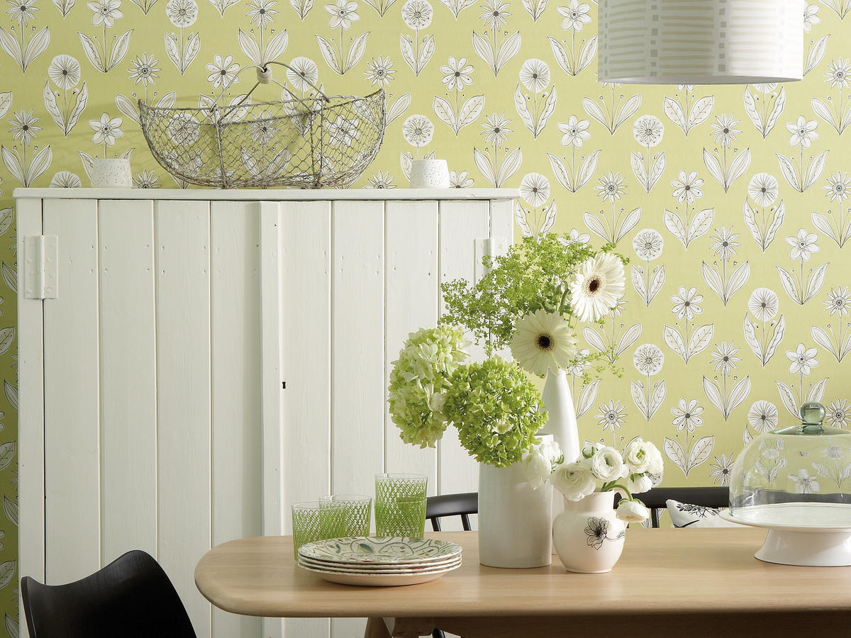 Motivos naturais da coleção em combinação com um fundo discreto irá atender qualquer sala.