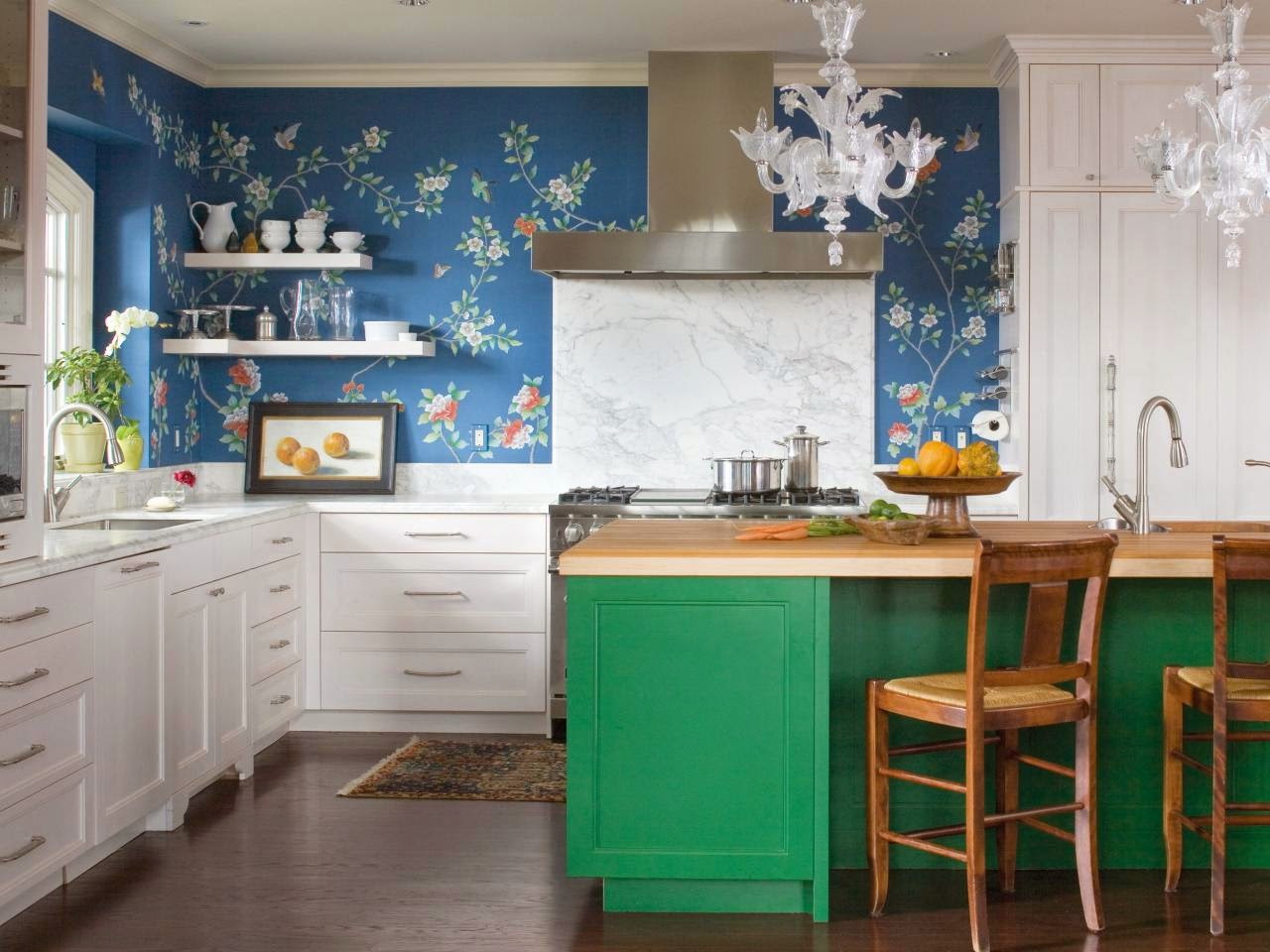 Papel de parede de vinil prático como se projetado para a cozinha. Ao escolher, lembre-se de que o relevo suporta uma limpeza mais apertada, mas a espuma pode ser repintada.