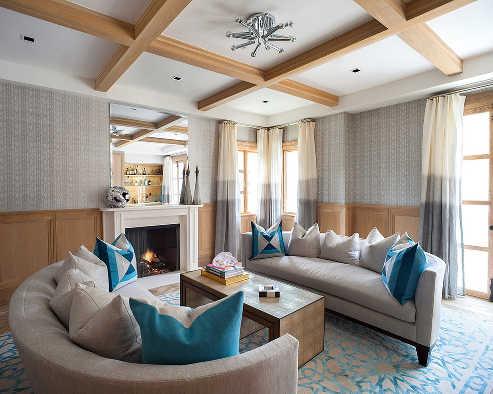 Principalmente pastel, cores suaves. Pérola, turquesa, carmim, bege, tons de grafite prevalecem. Transições suaves e discretas não criam desarmonia e reavivam bem a atmosfera do interior.