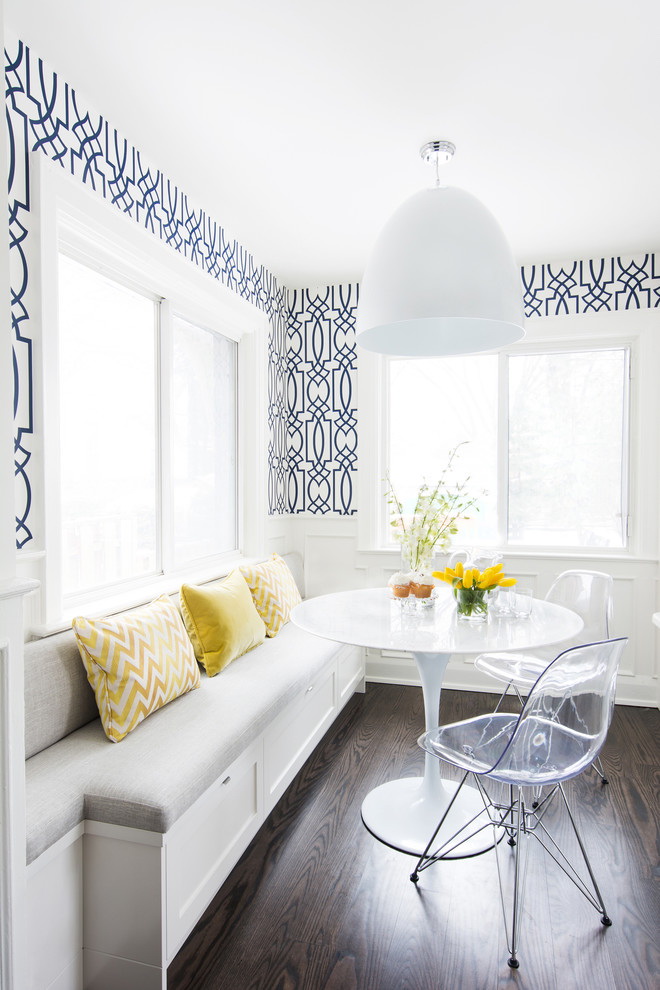 O vinil não desbota, retém a aparência de até 10 anos, é fácil de limpar e esconde quaisquer defeitos, até mesmo a própria parede curva.