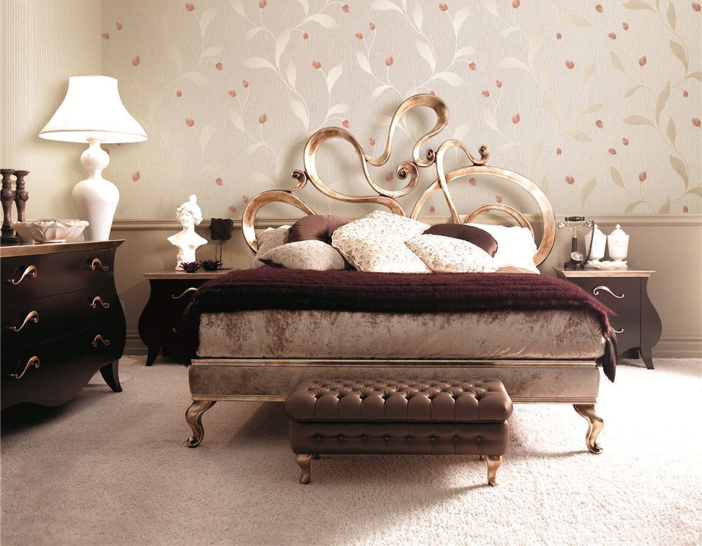 A decoração é monofônica ou com um padrão reminiscente de pinturas impressionistas, a estrutura de uma placa envelhecida ou besouro, esteiras, folheado e gesso.