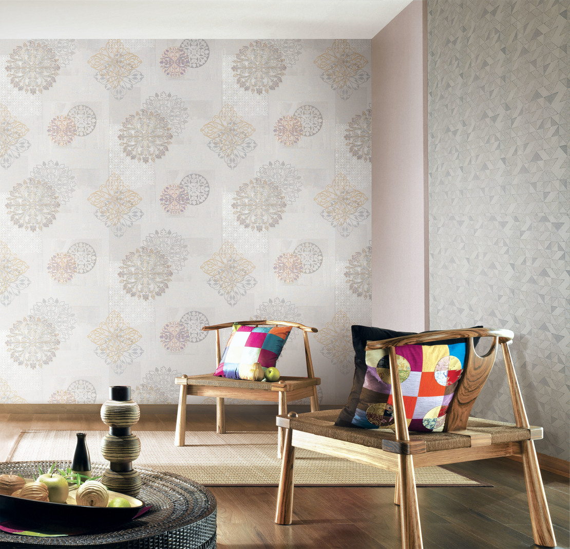 Papel de parede de vinil colorido, durável e confiável, em base não tecida, adequado para qualquer tipo de instalação.