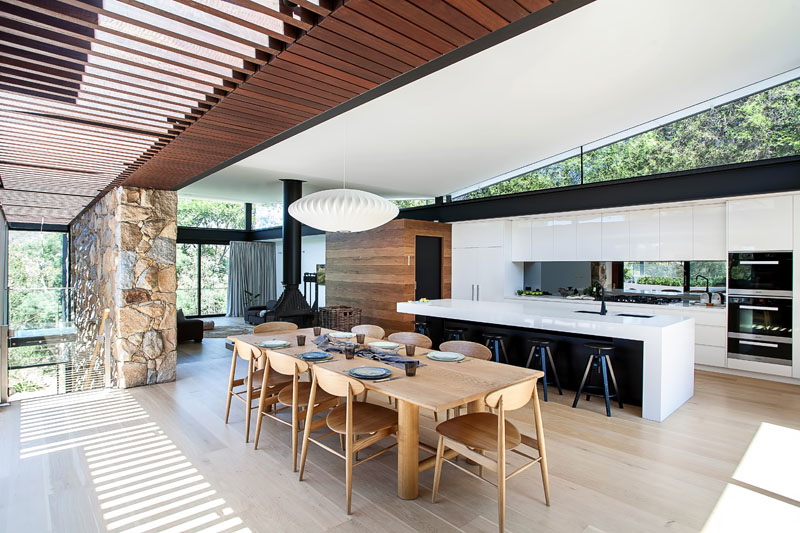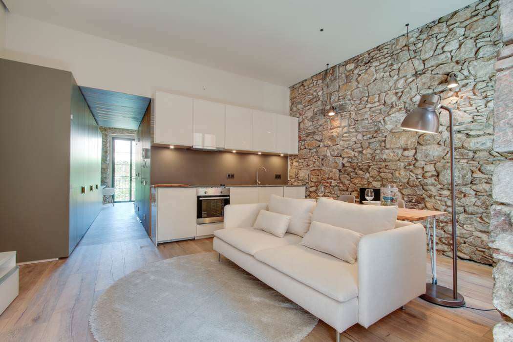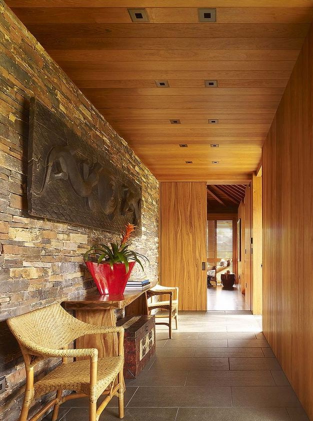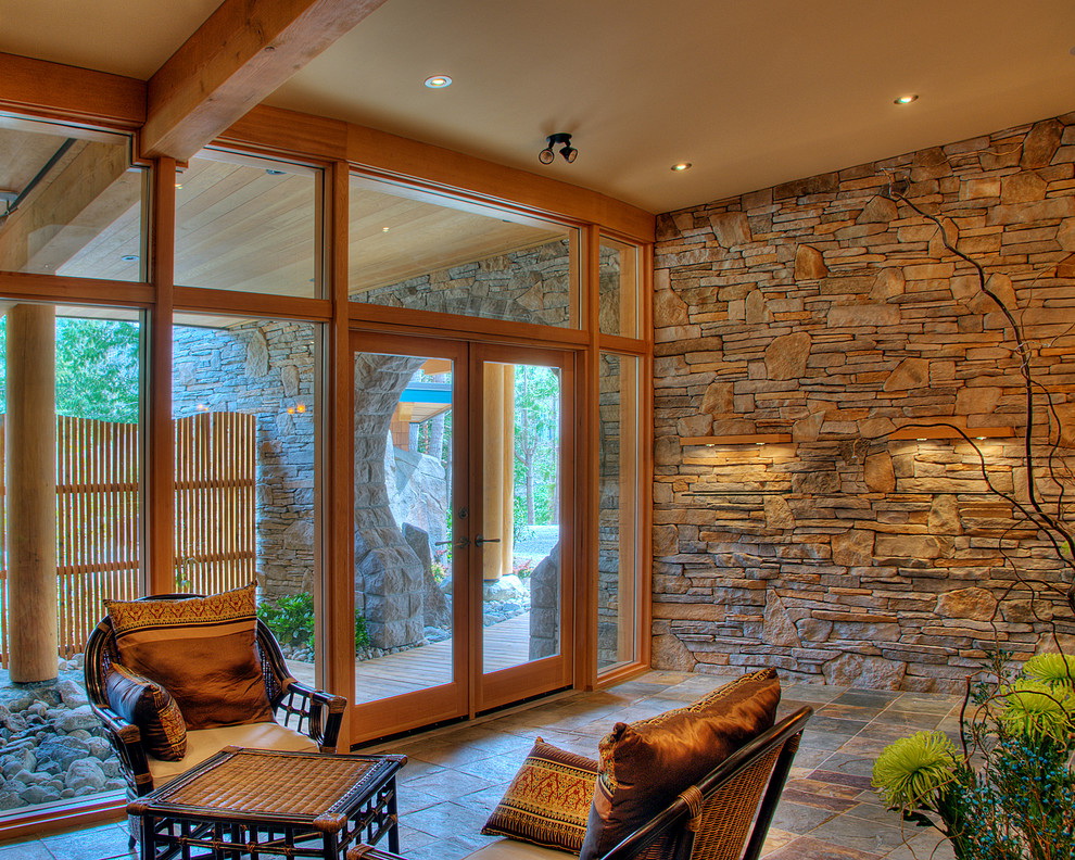 - minimalismo - estilo contido, que impõe suas próprias exigências para o uso da pedra. Neste caso, é importante escolher a alvenaria mais precisa, limpe cuidadosamente as juntas e junções;