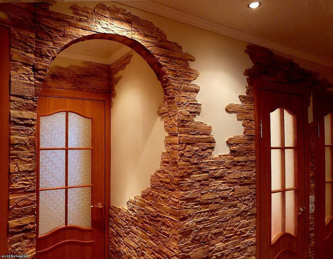 - criando um painel decorativo nas paredes do quarto, sala de estar, corredor, etc. Com a ajuda de uma pedra decorativa, você pode expressar sua imaginação e obter desenhos extraordinários que serão um acréscimo excepcional ao seu interior.