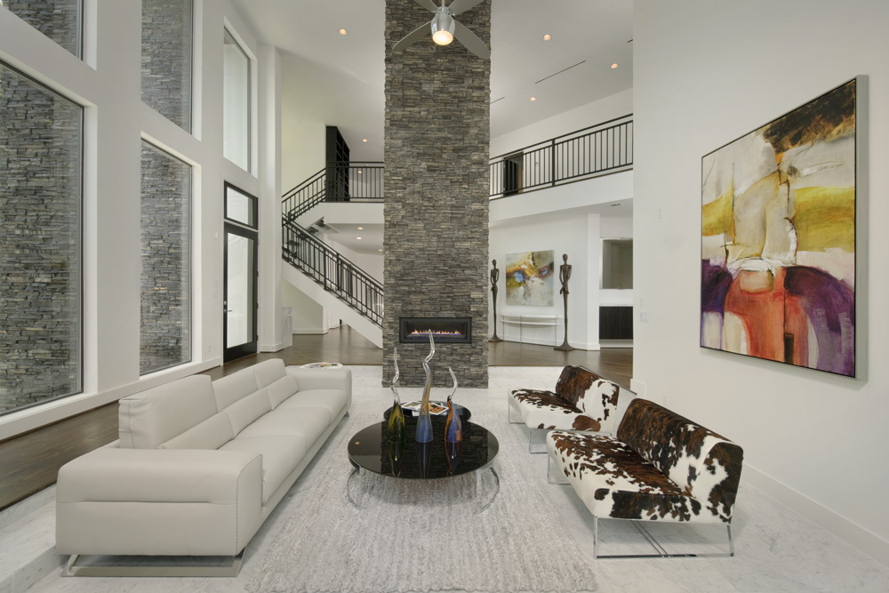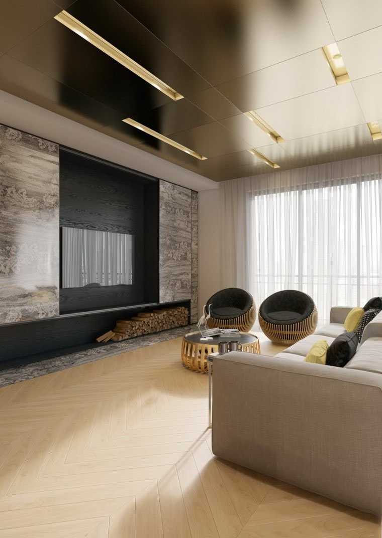 - sala de estar - fortalecimento de zonas individuais.Um local para relaxar, uma lareira, uma biblioteca, uma televisão ou um centro de música - o uso selectivo permite criar aconchego e conforto na sala de estar, tornando-a luxuosa e moderna;