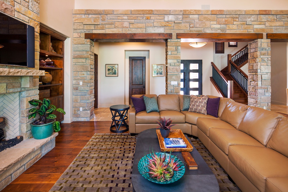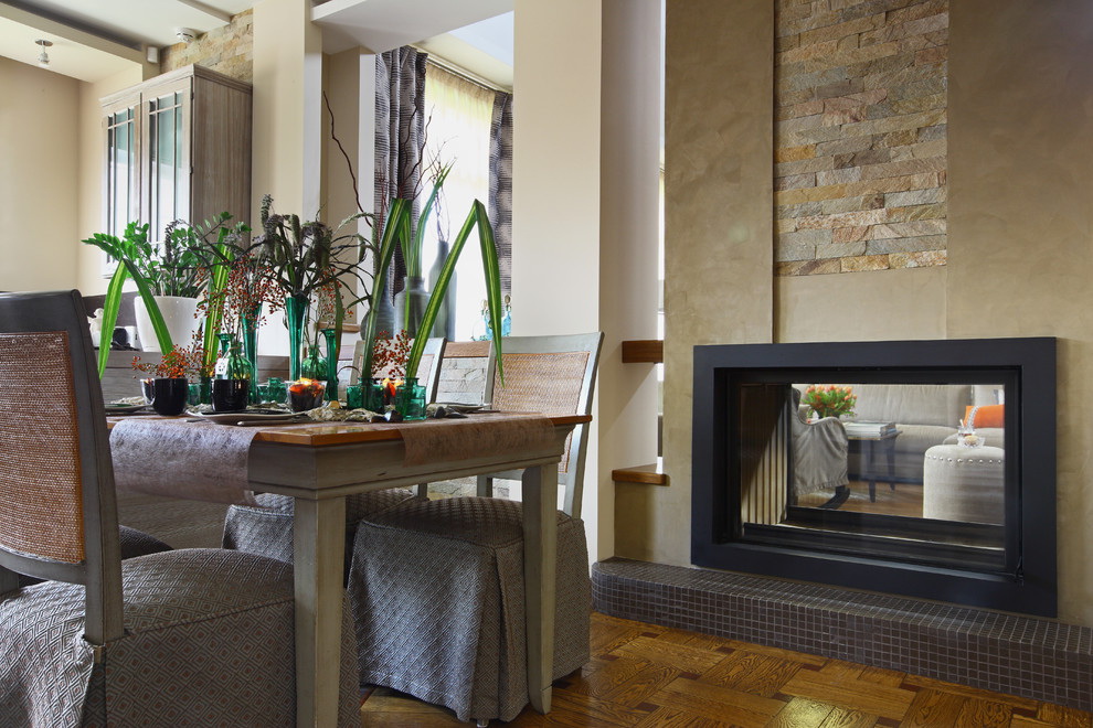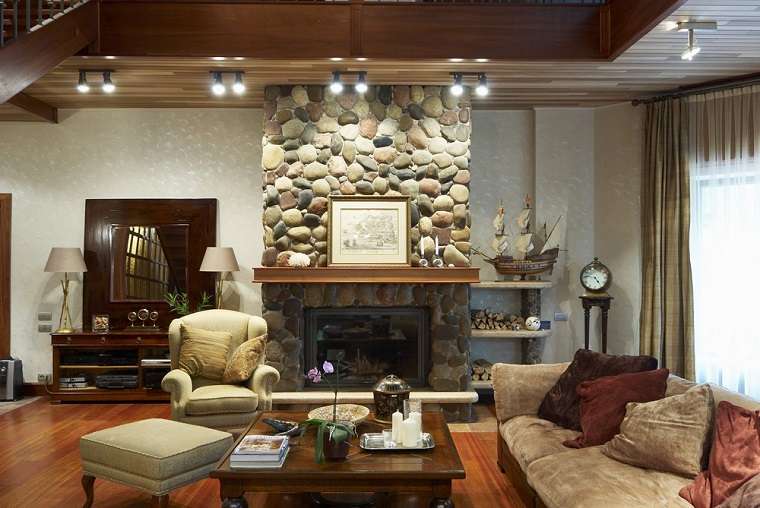 A aparência da pedra no interior depende do seu tamanho, cor e ondulação. Ao escolher uma ou outra opção, leva em consideração o estilo geral da sala.