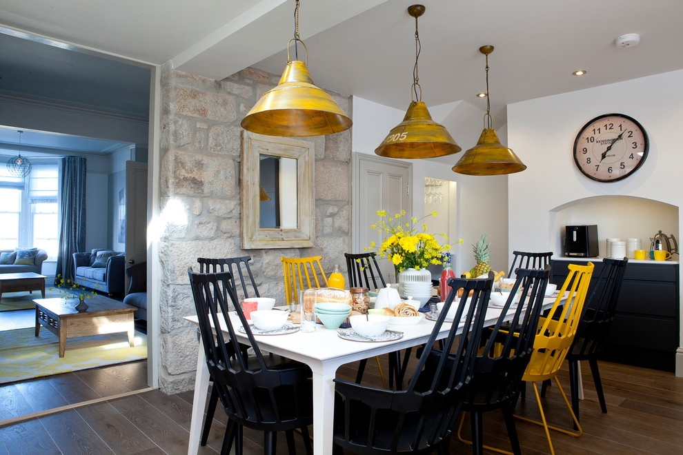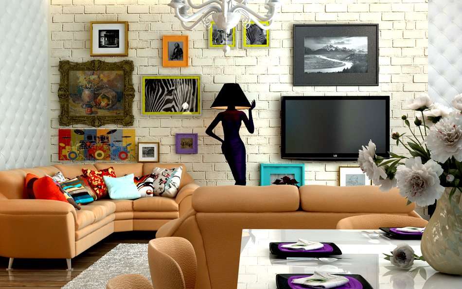 - o ecletismo é um estilo no qual experimentar. Ela floresce a partir do efeito de misturar diferentes ferramentas decorativas. Aqui você pode usar com segurança tons brilhantes em combinação com cores de base neutras.