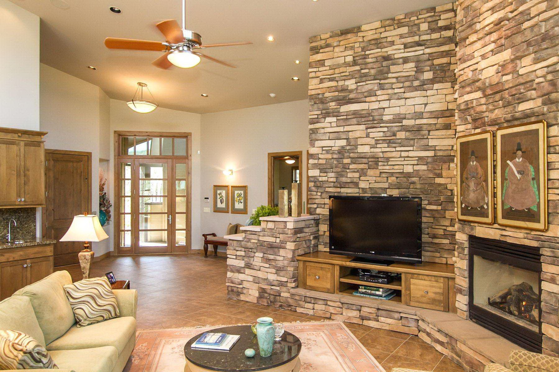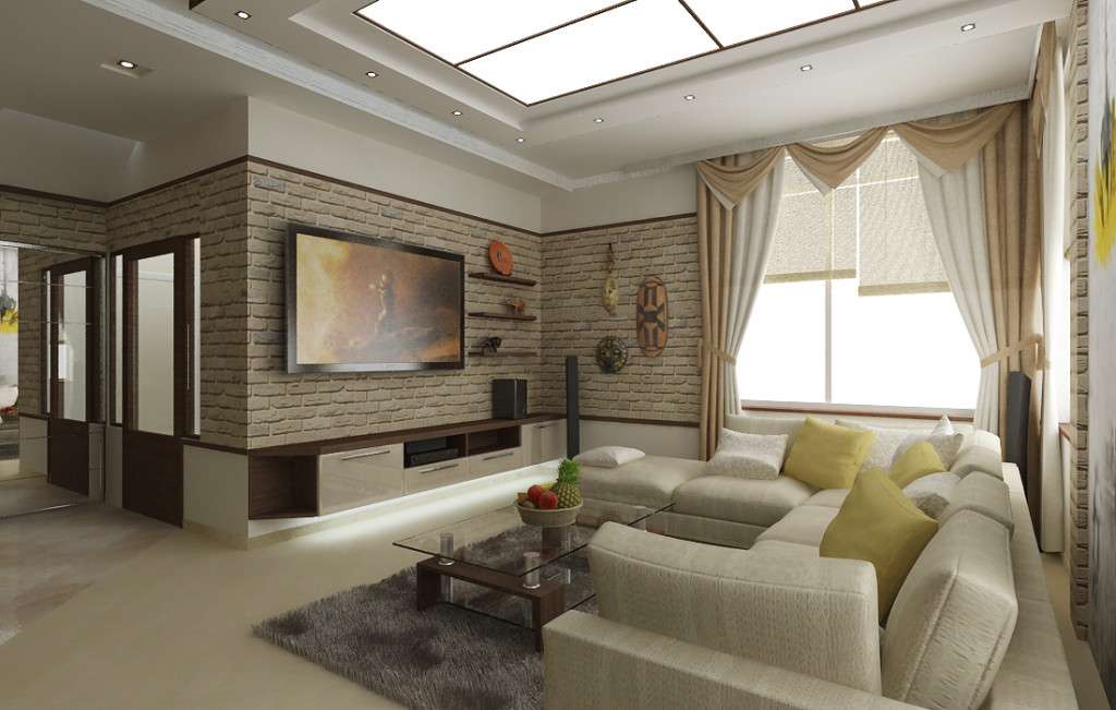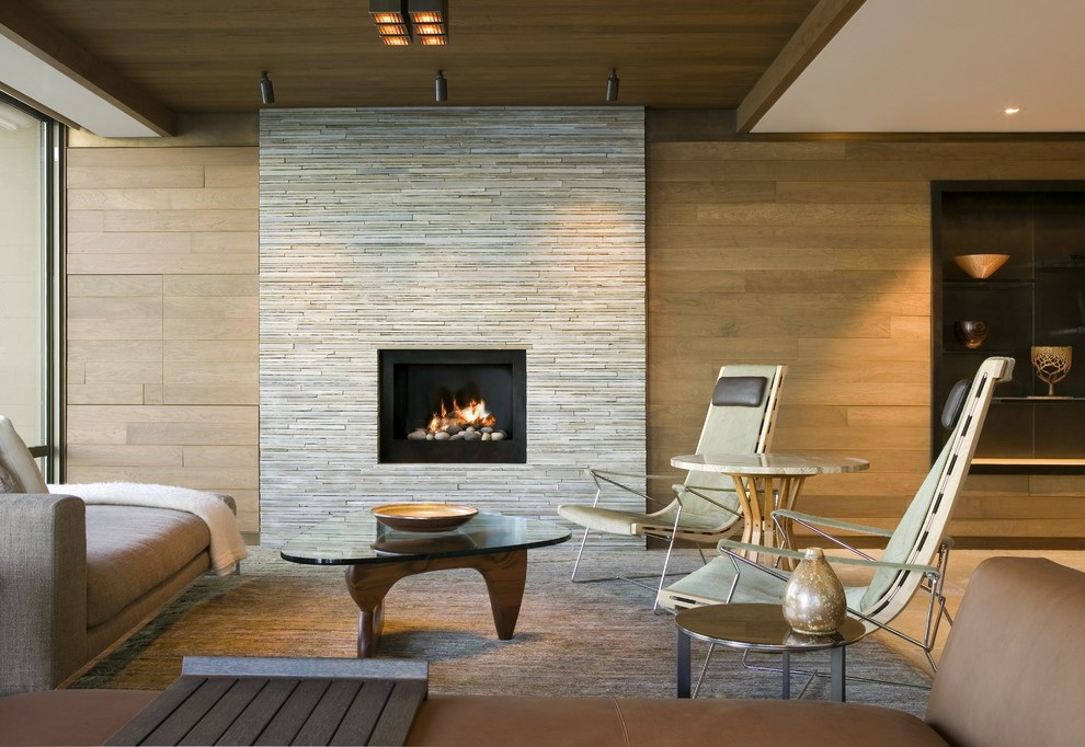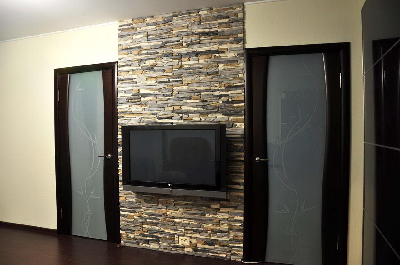 - Um grande cenário para uma grande TV na sala de estar seria decorar uma seção da parede. Se a sala tiver uma lareira, ela poderá ser revertida com esse material. Esta é uma opção ganha-ganha, carregando uma poderosa carga estilística;