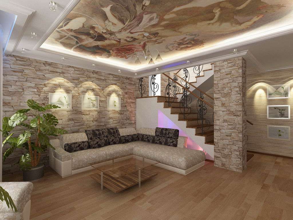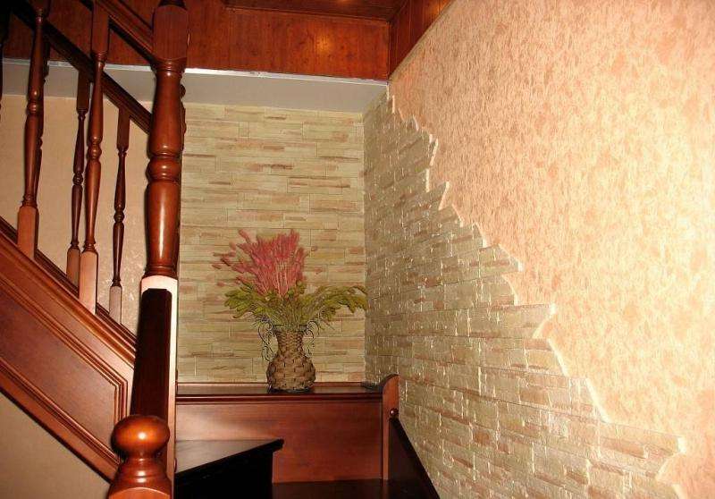 Por norma, não é necessário usar gesso decorativo para pré-alinhar as paredes. Outra maneira é usar painéis de plástico com efeito de pedra, azulejo, papel de parede 3D, etc.