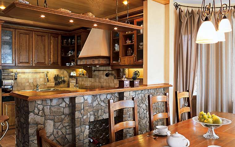 - Estilos rústicos como Provence e Country. Estas áreas são baseadas no uso de materiais naturais, tentam combinar alvenaria áspera com madeira natural, escolhendo tons naturais neutros. Isso criará uma atmosfera única de conforto, vida simples e confortável;