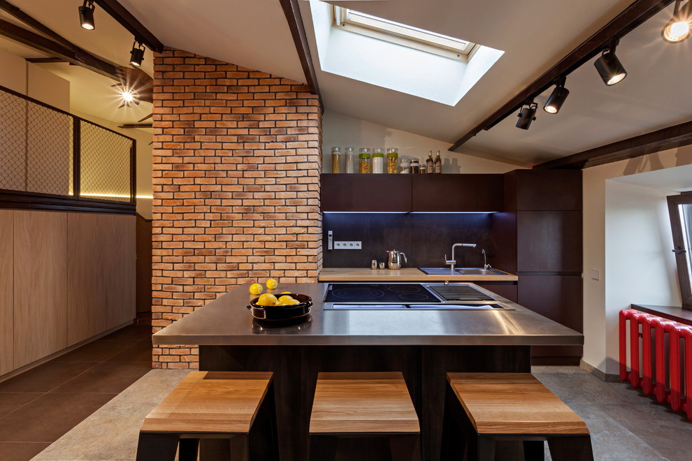 - Estilo Loft - estilo brutal claro e muito popular na sociedade moderna. É difícil imaginar sem alvenaria, que pode ser feita em uma variedade de cores, variando de tons claros a tons de cinza e laranja;