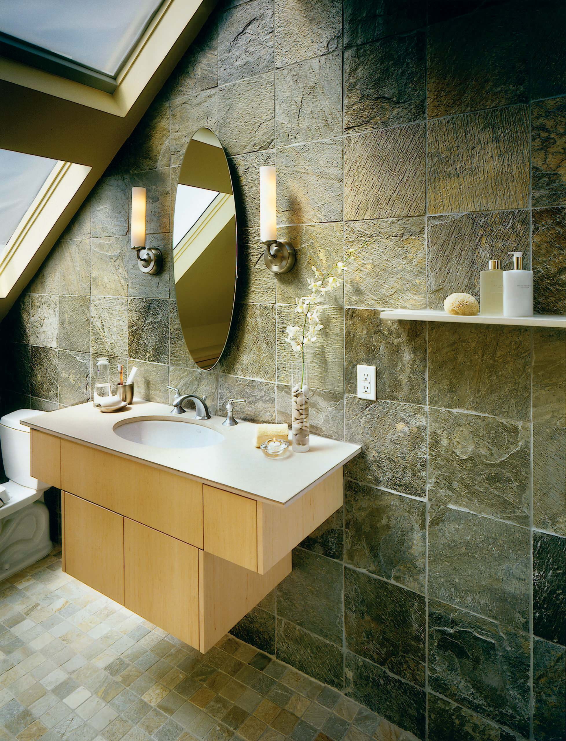 - travertino - resistente à umidade, é popular para decorar banheiros;