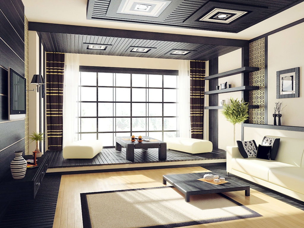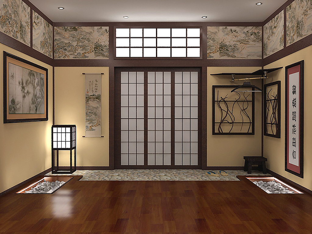 Quando usado no interior de motivos japoneses, sua orientação minimalista é levada em conta: no contexto de cores suaves, elementos tradicionais podem ser acentuados (um tapete com um enfeite, uma poltrona brilhante, etc.).