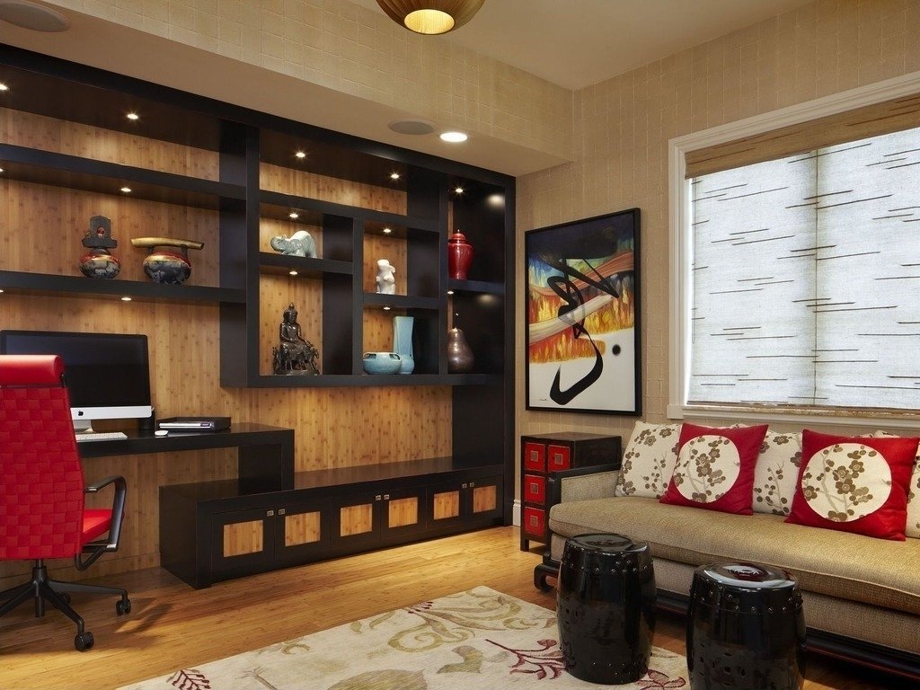 A diferença do estilo asiático é o seu minimalismo, ou seja, o quarto deve ter uma quantidade mínima de móveis e decoração, mas a iluminação deve ser máxima. Os interiores da China bem-vindos cores brilhantes (o vermelho, amarelo, azul), e em japonês no momento do registro apenas é permitido um intervalo reservado de cores.