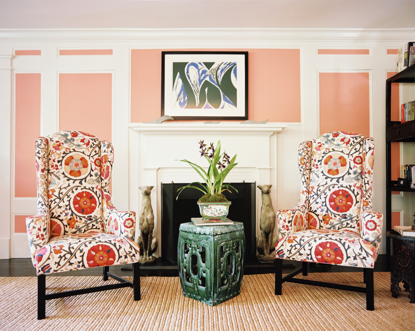 - cores brilhantes e cores contrastantes que são usadas para decoração de parede, tecto, de móveis ornamentos decorativos (cores primárias - amarelo, turquesa, escarlate);