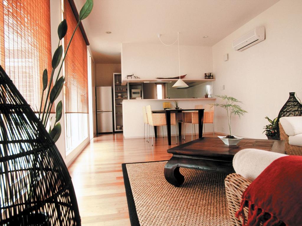 - todos os móveis são baixos, o agachamento, em vez de cadeiras, é preferível usar travesseiros para sentar;