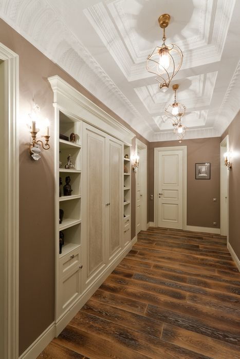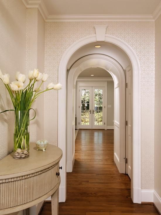 - Você tem arcos, nichos, projeções significativas ou aberturas no seu corredor? Em seguida, impressões grandes devem ser evitadas. Mas pequenas impressões ou planilhas estarão no lugar.
