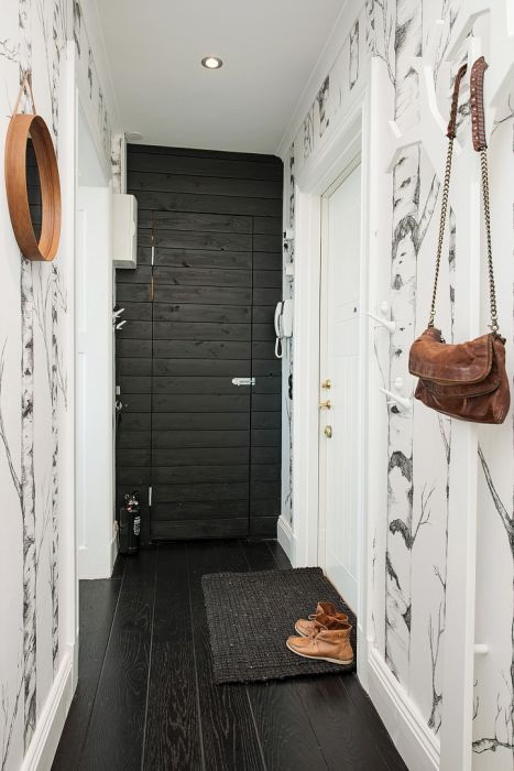 É possível usar uma abordagem muito diferente no design das paredes: do tradicional ao original, inovador, que é determinado pelo interior do apartamento, o corredor em particular.