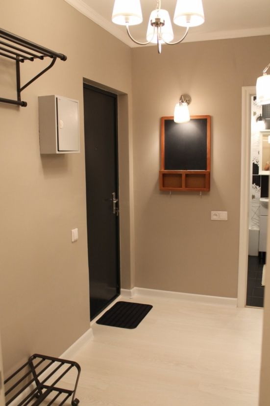 A impressão do apartamento começa a tomar forma, mesmo a partir do limiar. Portanto, quero dar-lhe as características de elegância, adicionar cores espetaculares e claras.