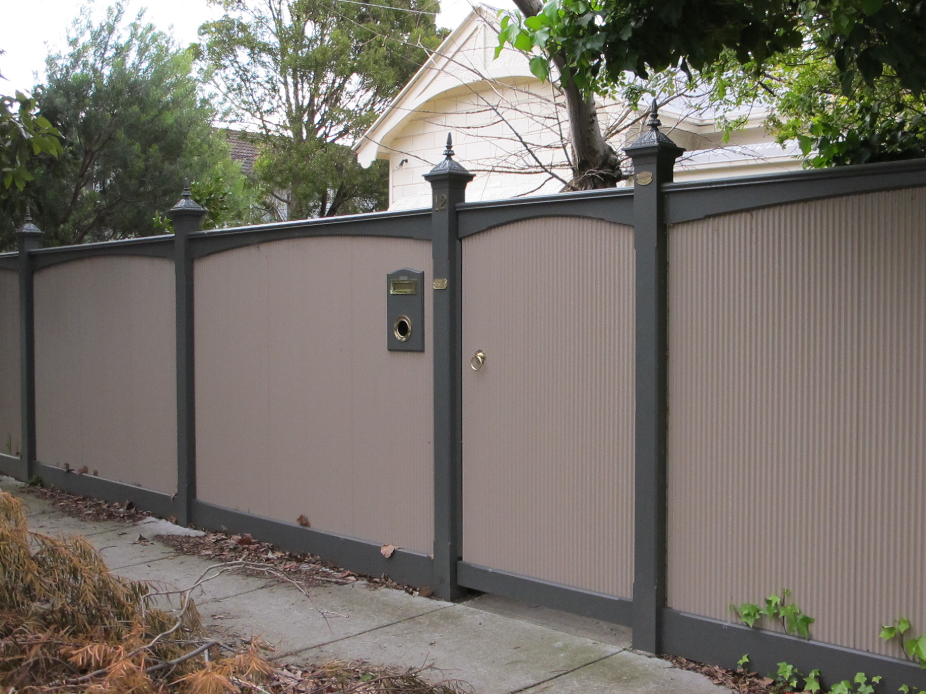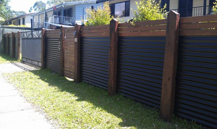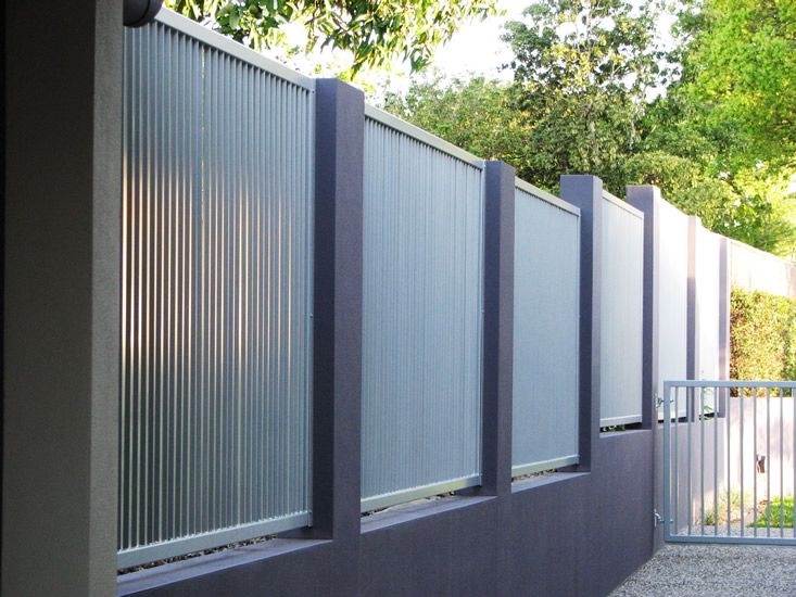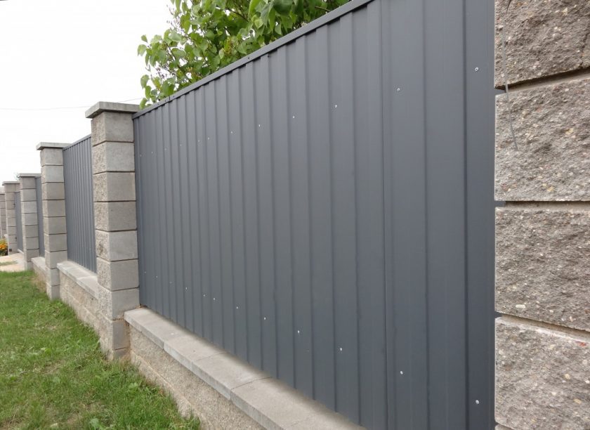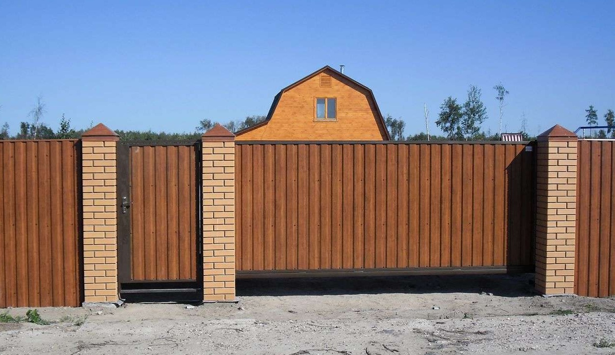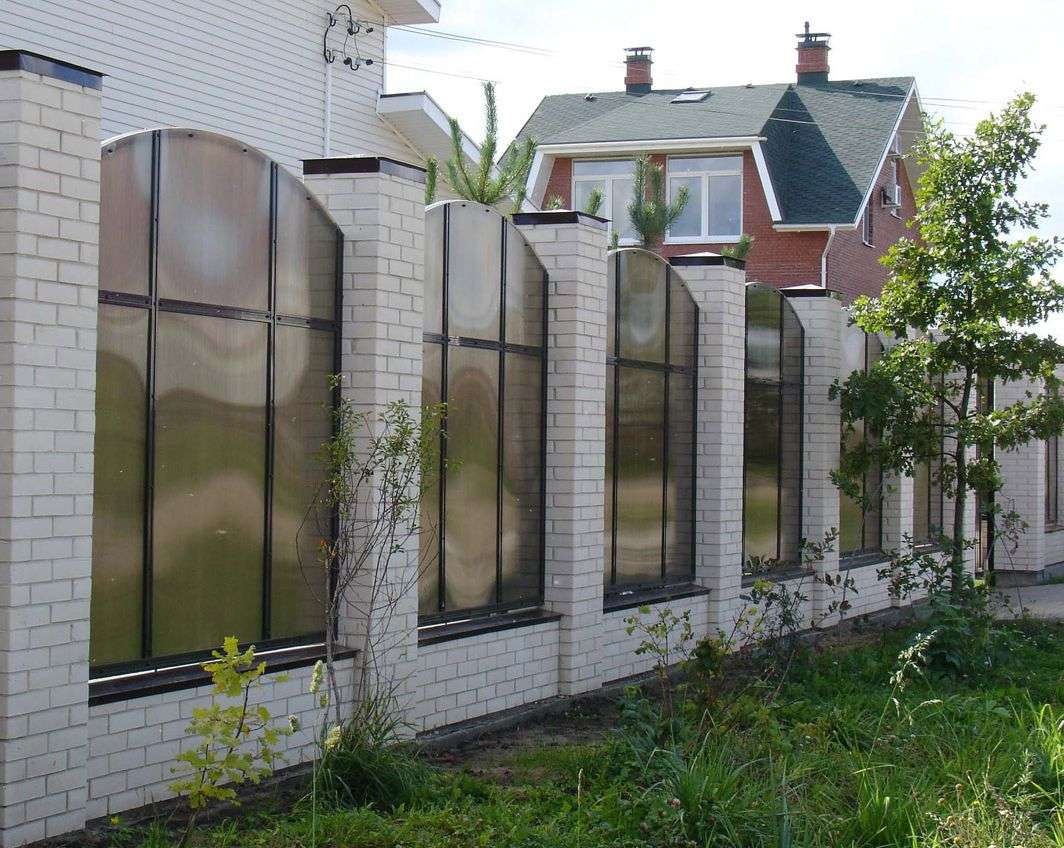 Essas paredes de tijolos e chapas perfiladas eram montadas rapidamente. Você não precisa ser um mestre especializado, você só precisa tratar com cuidado a tarefa. Os pilares de tijolos tornam o suporte mais durável e estável. Para todos, você obtém um plus na forma de melhorar a aparência estética geral.