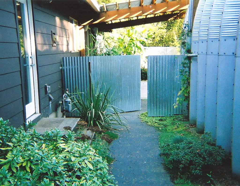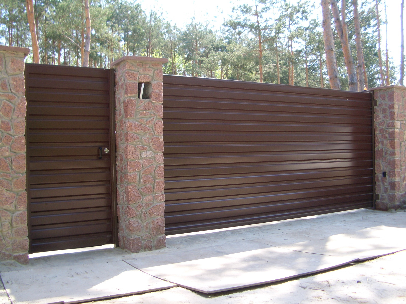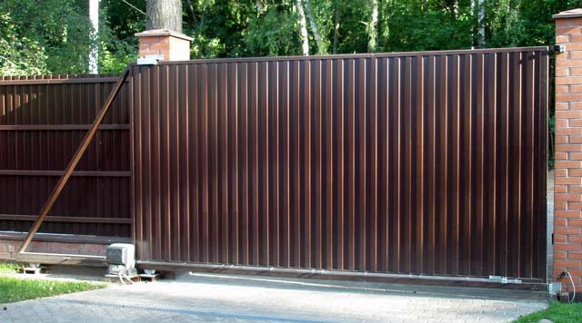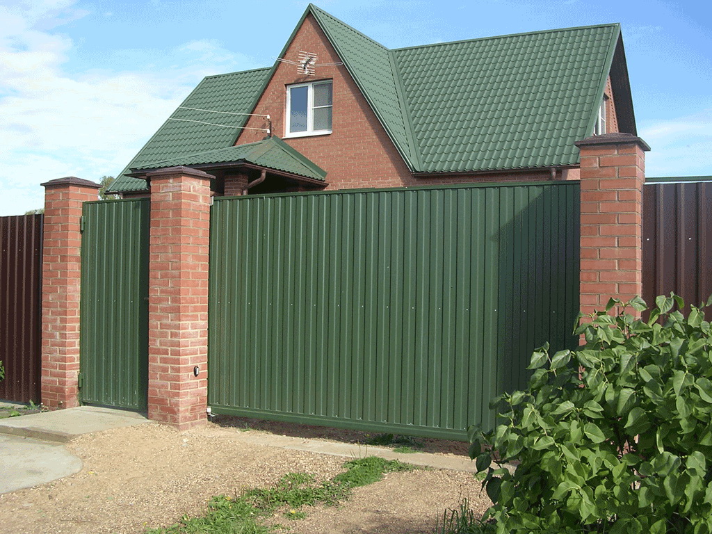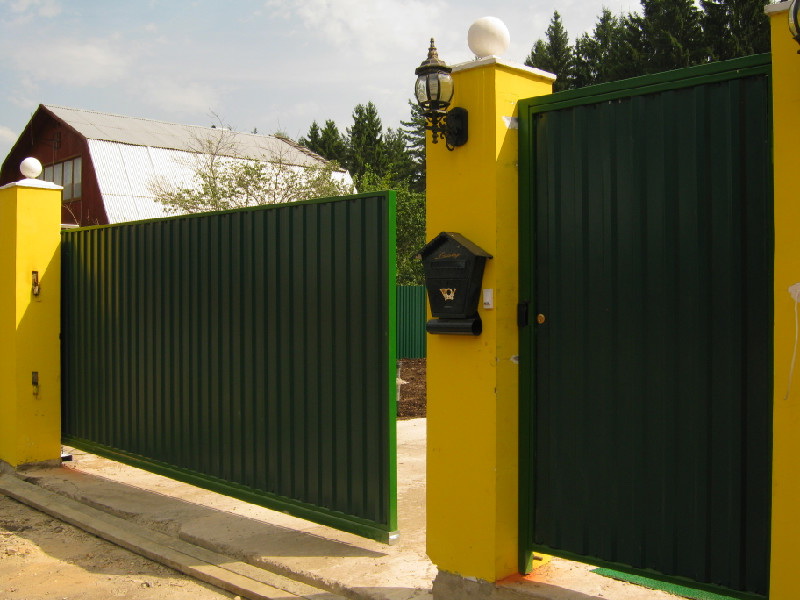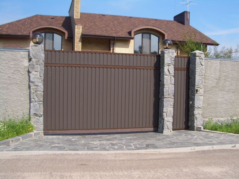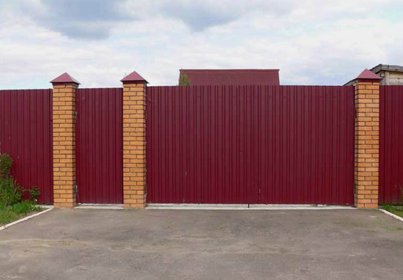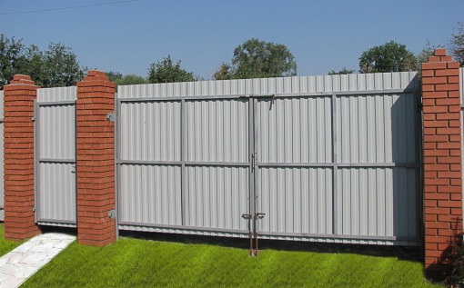 Folhas de metal perfiladas são usadas não apenas na construção da parede da cerca, mas também na fabricação de portões e portões.