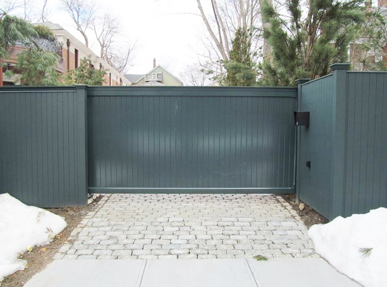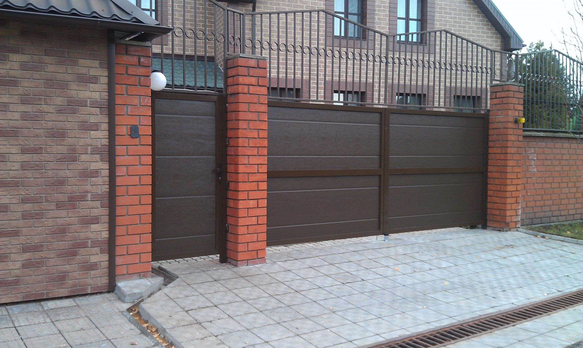 - Portões de correr. Uma das opções mais convenientes em que os proprietários de terras podem economizar espaço, especialmente se estiver quase lá. Presença obrigatória do "trilho" superior e inferior para o movimento da tela.