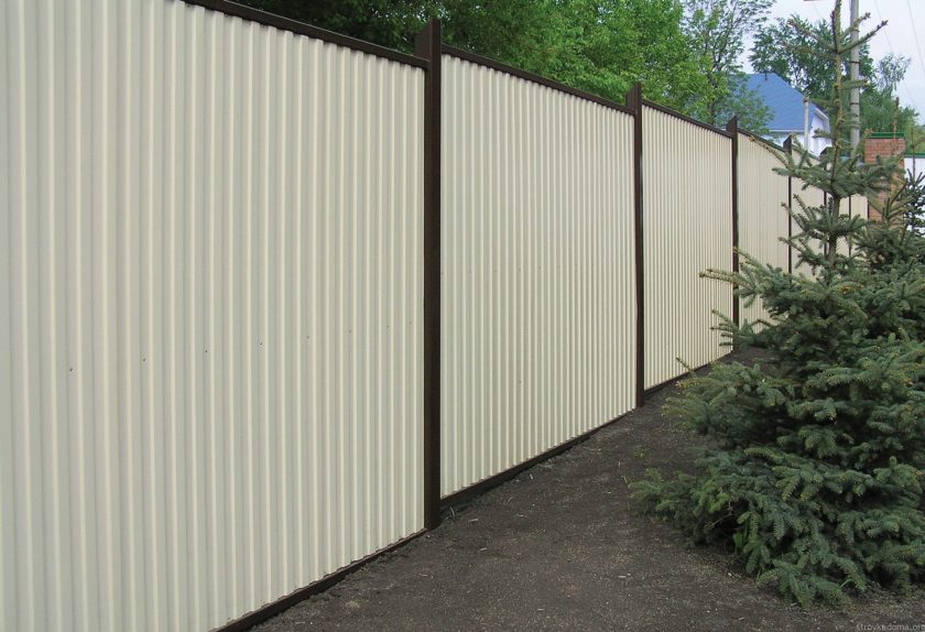 - Além disso, a construção deste material é que, em contraste com a cerca da cerca, o uso de papelão ondulado permite evitar folgas entre as folhas. Além disso, o proprietário também pode determinar a altura que ele precisa.