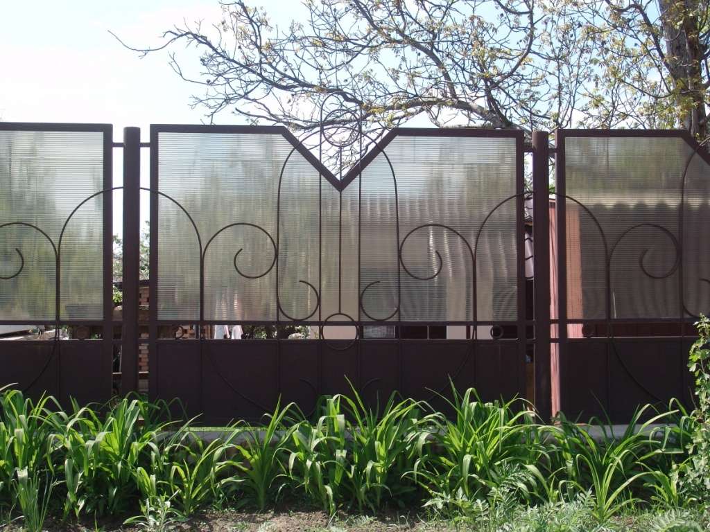 A dignidade do policarbonato na construção de cercas é que por isso você resolve o problema de sombrear a área a partir do sol e da luz. Policarbonato pula oitenta a noventa por cento da luz solar, então as flores plantadas em sua casa de verão, arbustos, plantas cultivadas vão crescer e se desenvolver.