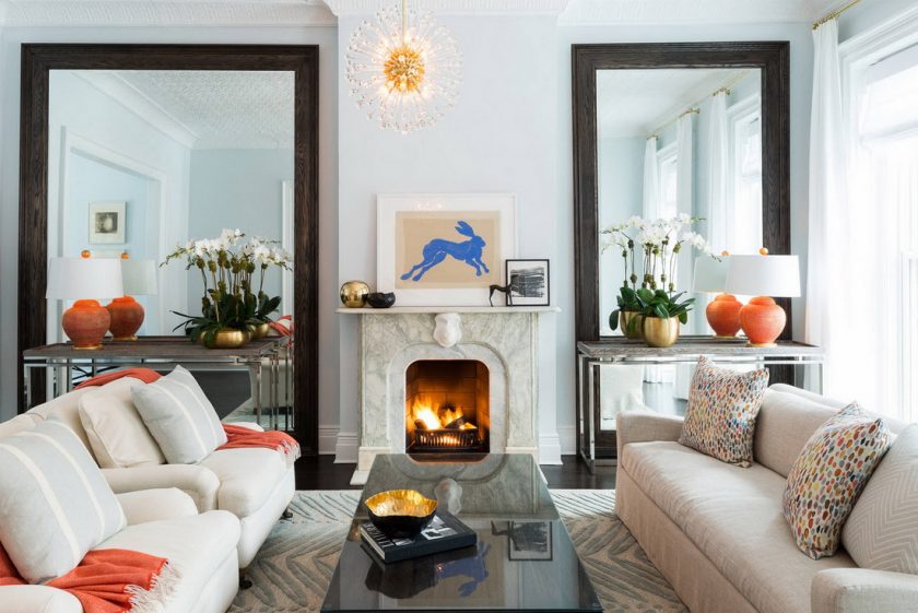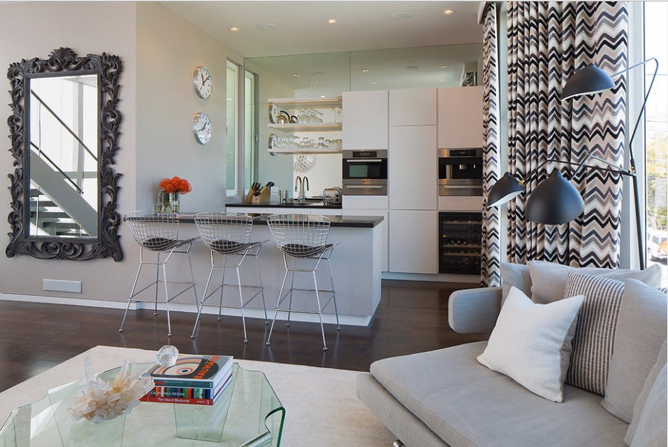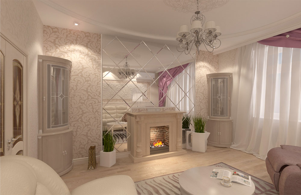 Em grande salas de estar custo e sem espelhos, afinal, espaço suficiente. Uso em salas pequenas torna-se uma salvação para os proprietários, corrige pequenos defeitos na sala. Antes de comprar um modelo, avalie o layout da sala, anote as falhas que precisam ser escondidas.