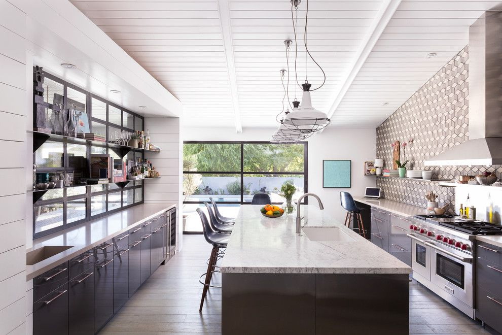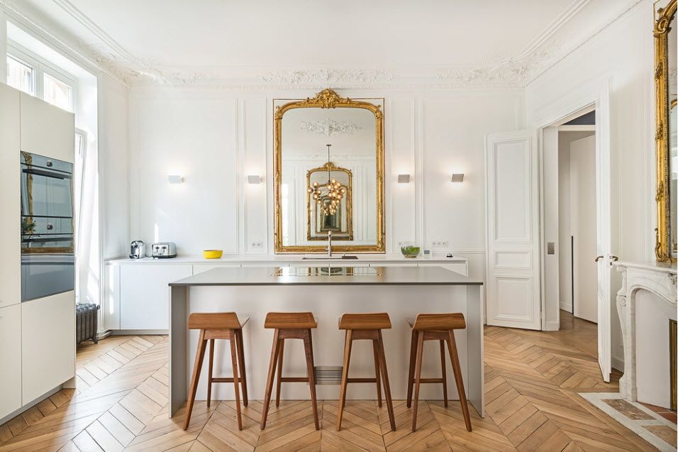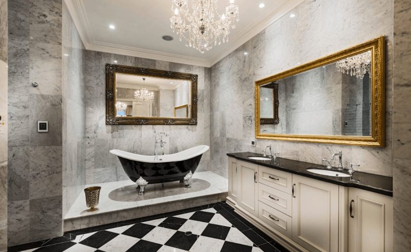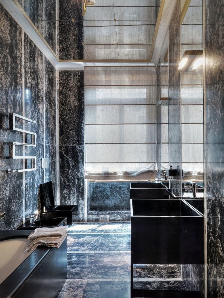 - Elas “puxam” as paredes para cima com acessórios alongados e, para “expandi-las”, decoram as paredes com longas faixas de espelho na horizontal.