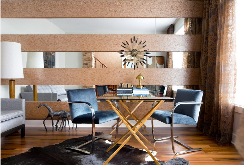 - superfícies de espelho não têm em frente à porta da frente ou nos quartos para relaxamento, nem todo mundo gosta de ver sua exibição constantemente;