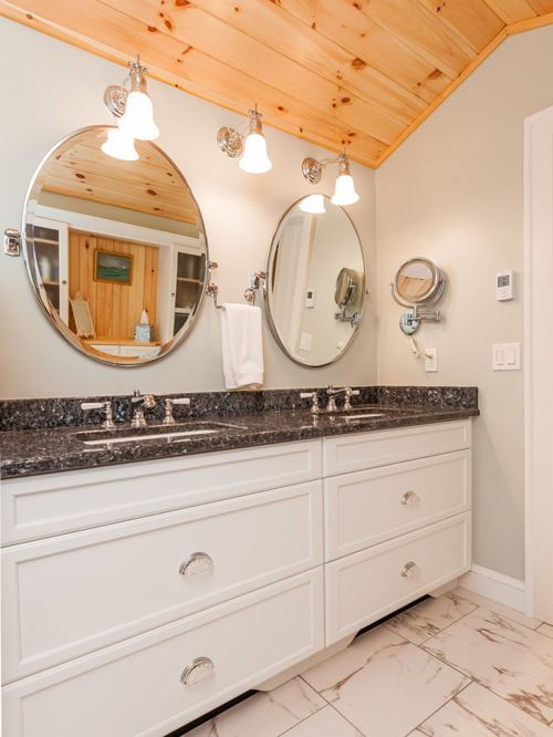 Ao escolher espelhos no banheiro de um pequeno apartamento, combinamos praticidade e beleza.