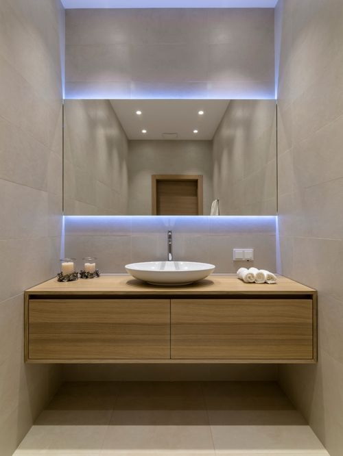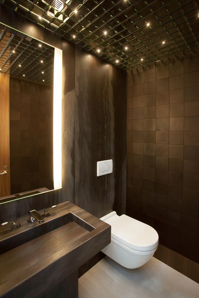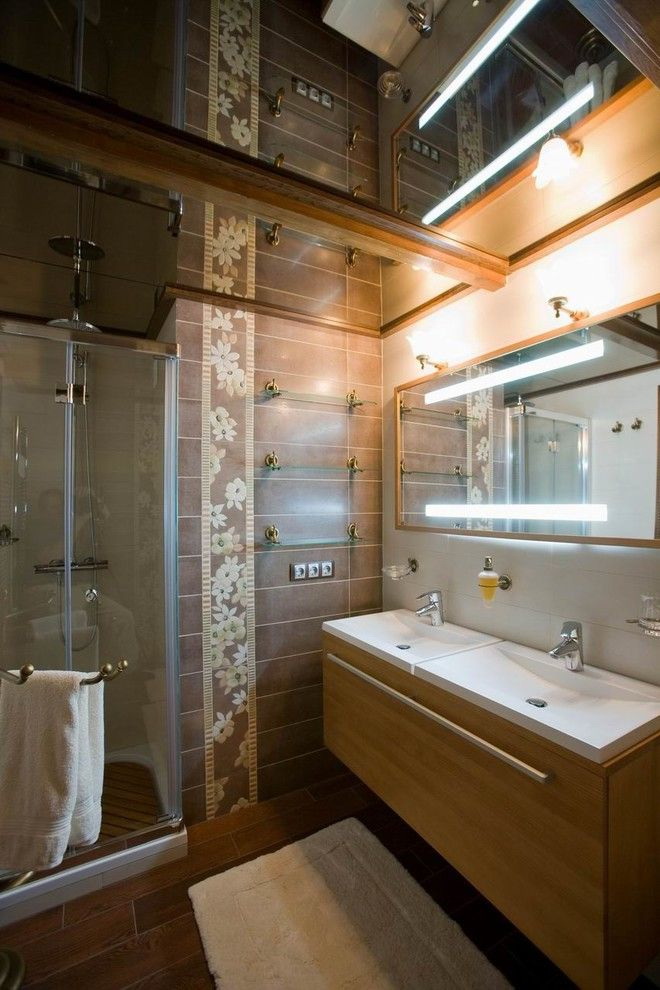 Mesmo em um banho pequeno conjunto espelho alto em pleno crescimento. Complementamos com vários pequenos modelos nas paredes ou fazemos um mosaico reflexivo. Recepção "expandir" o quarto, o banho parece muito mais espaçoso.