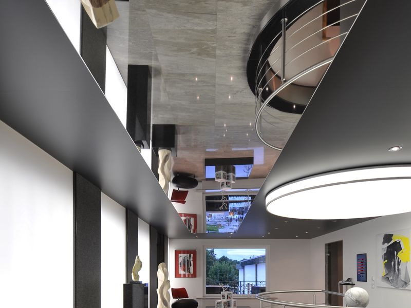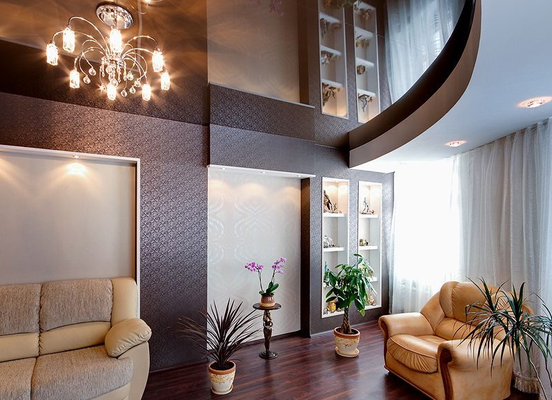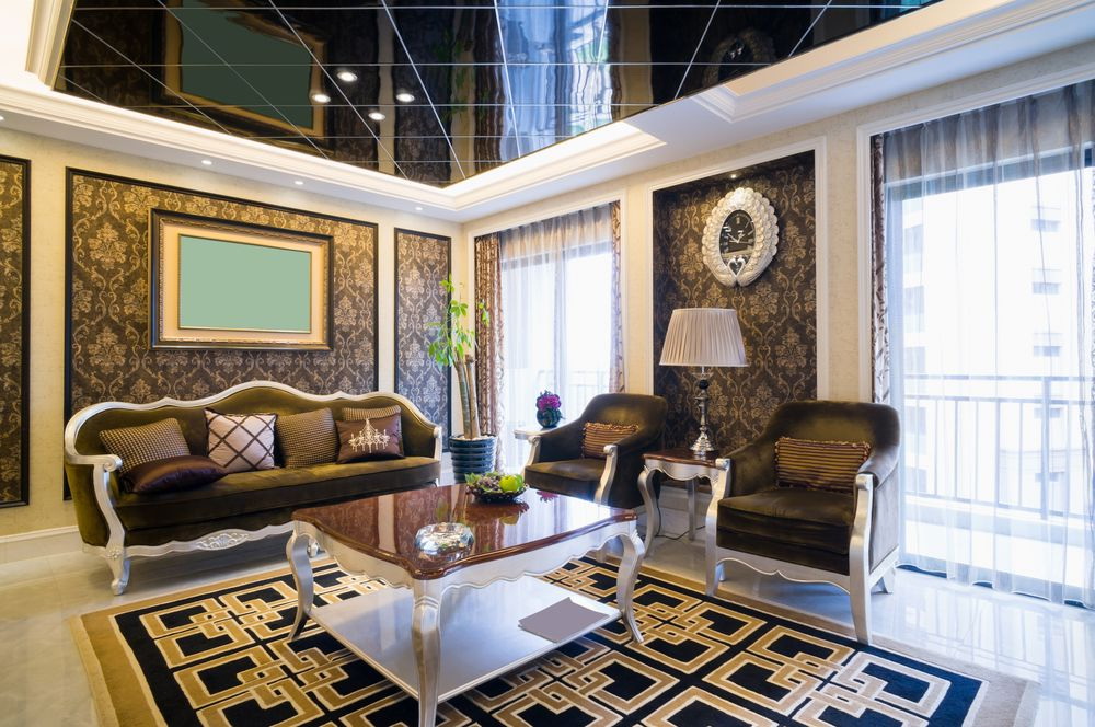 - Tetos com espelho não podem ser feitos na espaçosa sala de estar. Esta técnica é aceitável em salas com tetos baixos para “levantá-las”.