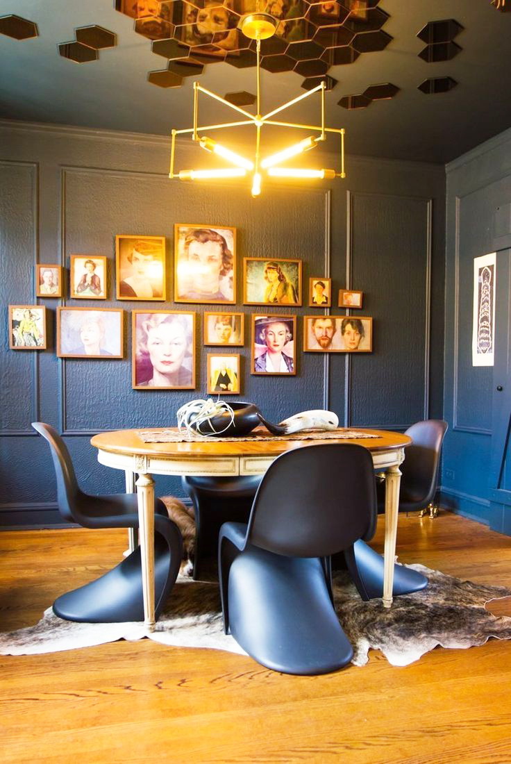 - Galeria. Reduzir a altura da sala ajudará a galeria de espelho. Modelos emoldurados pendurados na parede. A recepção "quebra" a parede, tornando-a visualmente mais baixa.